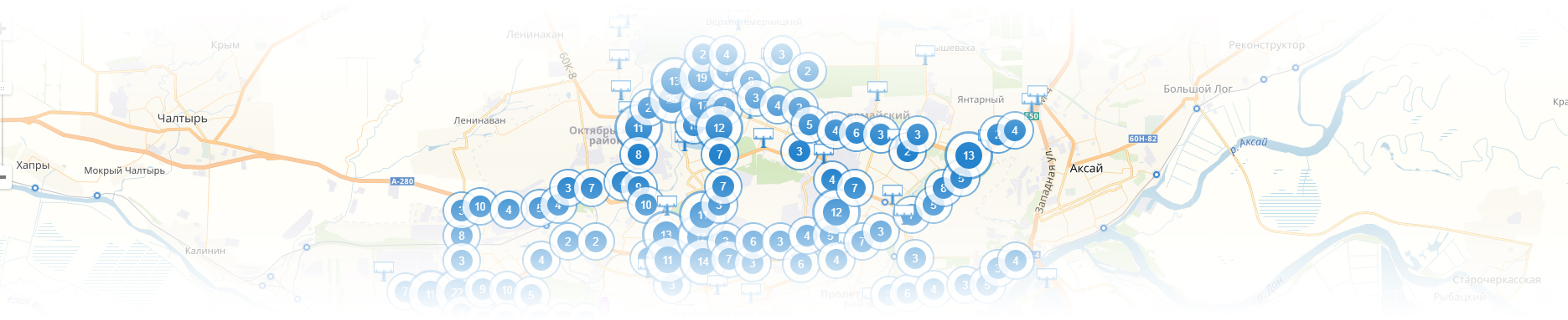 На данной карте Вы можете посмотреть адреса и цены, заказать размещение рекламы на билбордах и других конструкциях.